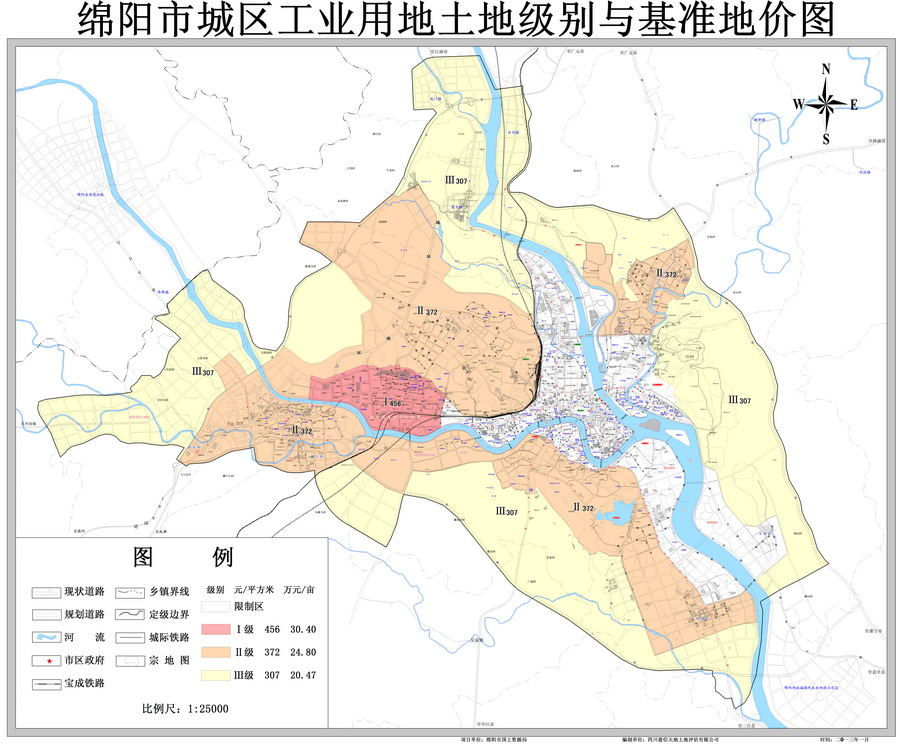 绵阳市城区工业用地土地级别与基准地价图(2013年)