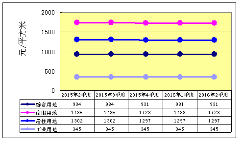 综合用途地价测算以各用途土地面积占整个监测范围总面积的比例为权重计算得出的价格水平