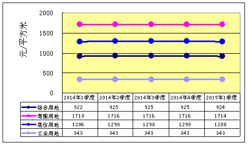 绵阳市2015年一季度地价水平值统计图