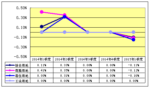 绵阳市2015年1季度地价增长率统计图