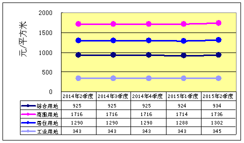 绵阳市2015年二季度地价水平值统计图