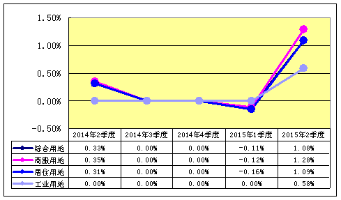 绵阳市2015年2季度地价增长率统计图