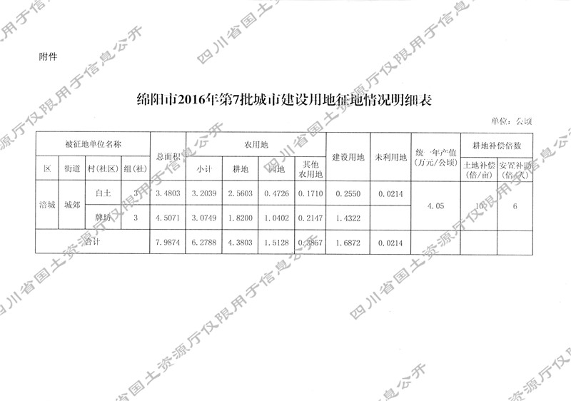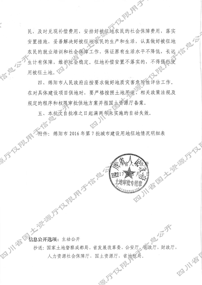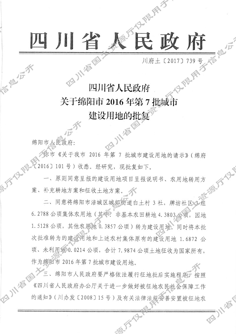 关于绵阳市2016年第7批城市建设用地的批复