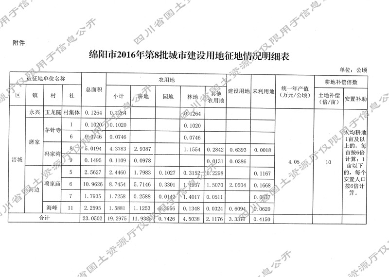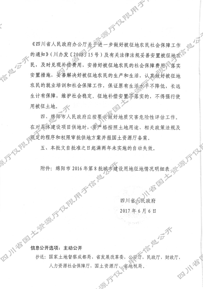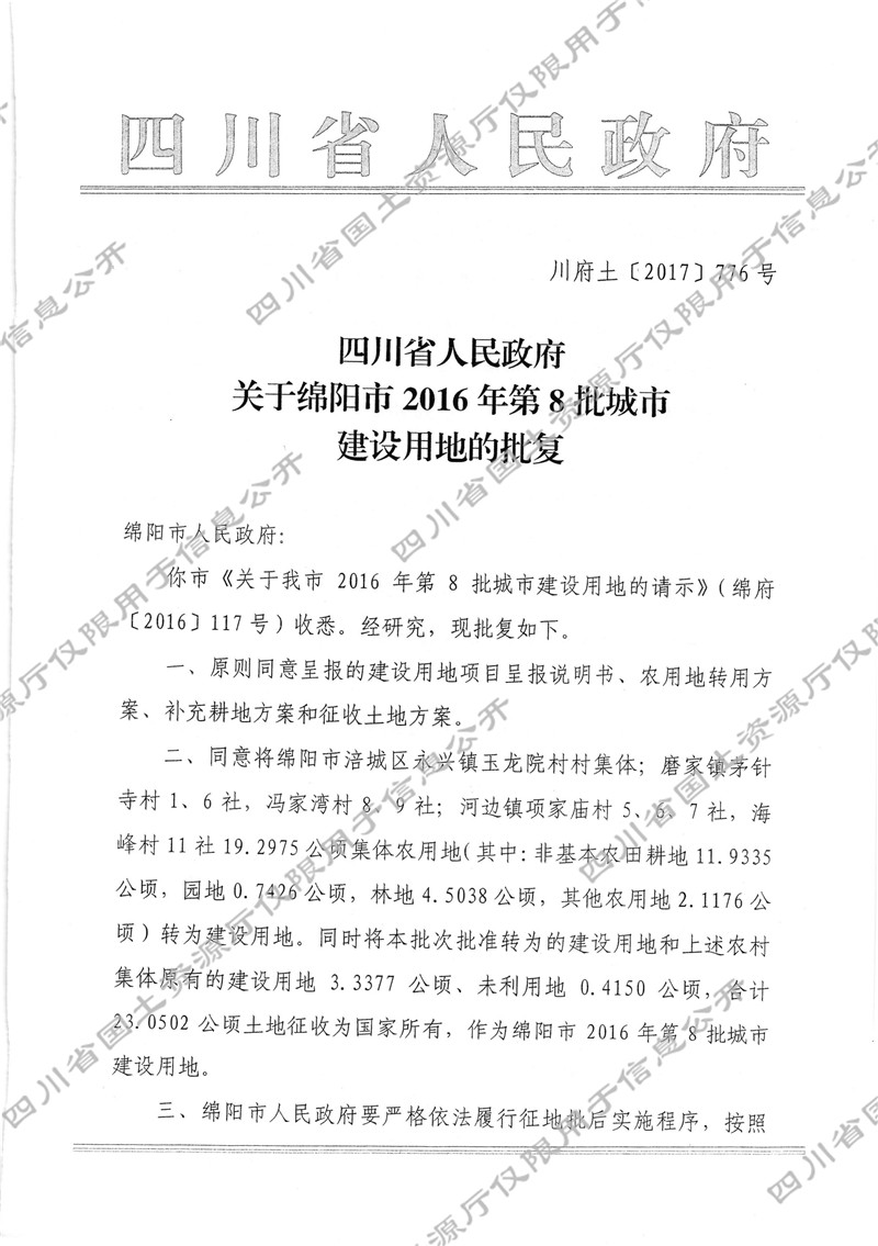 关于绵阳市2016年第8批城市建设用地的批复