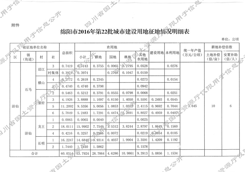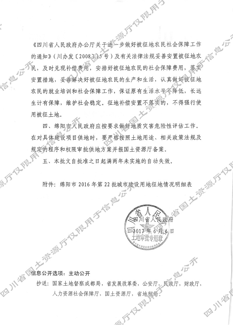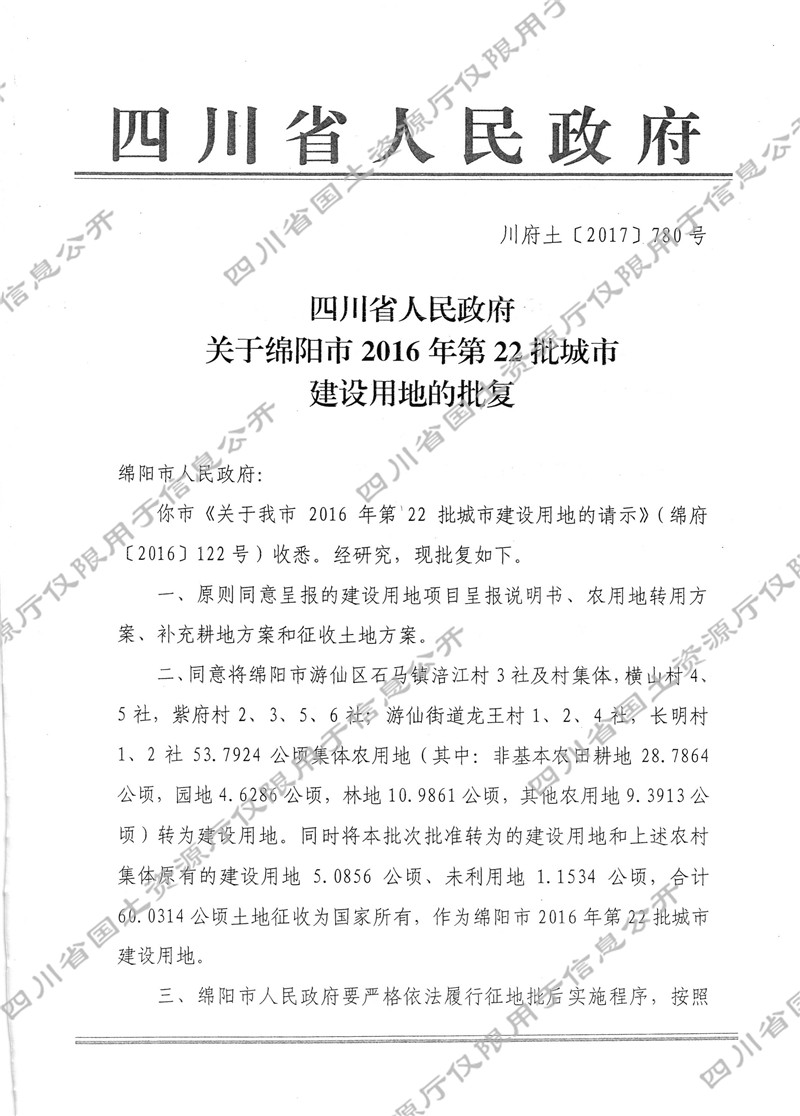 关于绵阳市2016年第22批城市建设用地的批复