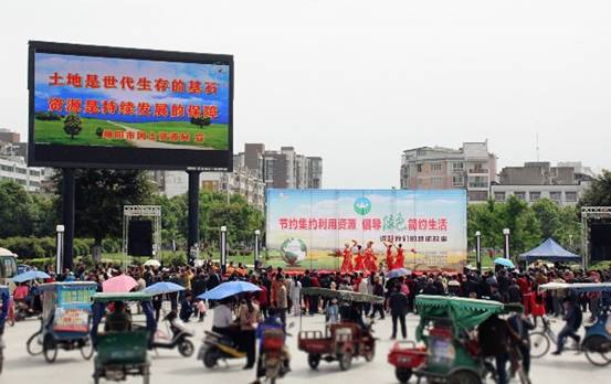 来自西南科技大学的同学们带头宣誓,呼吁大家携起手来,保护地球,制止生态恶化,呵护我们赖以生存的家园。随后,精彩的舞蹈,幽默的小品......轮番上场,吸引了上百群众驻足观看。市国土资源局的志愿者们走上街头,通过发放宣传单、有奖问答等方式与群众互动,倡导人们从现在做起,从自己做起,把绿色简约作为一种生活规范和行事准则,推动人口、资源、环境协调可持续发展。